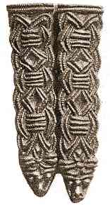 Many everyday objects were decorated in ways that required high levels of skill on the part of the artist. The historical carved wooden object shown to the right was probably a medallion worn around the neck for personal adornment. The object, about 40mm across (1½ in), has detailed, deep-relief carving. During the Norse era, various styles of artistic decoration were developed. These styles were used for jewelry as well as a wide variety of other decorative items, such as the decorative mounts shown to the left and below.