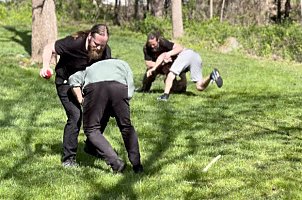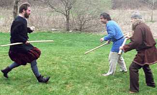 The first annual New England intercollegiate knattleikr competition (left) was held in April, 2007. A short video clip of a practice scrimmage by the Clark University team is available here in QuickTime (9MB) or Windows Media (7MB). |