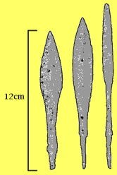 Arrow heads were made in a variety of shapes and sizes. Some historic arrowheads from the 10th century found in Norway are shown in the sketch to the left. The shortest is 12cm (5in) long. Arrowheads are not commonly found in the graves of warriors, suggesting that bows were not thought of as tools for warriors. Most arrowheads are found at house sites, which might suggest that bows were thought of domestic tools, used for hunting. Perhaps a good analogy is that the Viking-age bow was used in the same way as a shotgun on a modern farm, rather than as a military rifle on the modern battlefield. The forked arrowhead shown to the right was found at a house site in Reykjavík in Iceland. Arrowheads in good condition were found at several Icelandic house sites dating from the Viking age, and they range in length from 10-15cm (4-6in). Arrowheads had a tang which was driven into a hole in the shaft and secured with cordage and pitch. The tang is clearly visible in the photo to the right. Although evidence is very slight, shafts were probably 70 to 80cm (28-32in) long, and perhaps 10mm (3/8in) in diameter. Shafts were probably made out of hardwood, in order to hold the tang. |