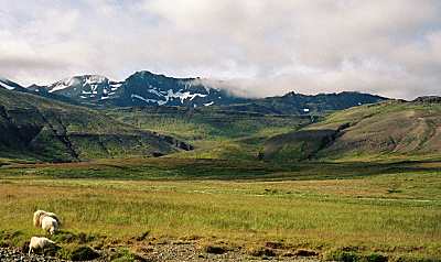 In chapter 44 of Eyrbyggja saga, Snorri goði and his men fought against Steinþórr and his men at Geirvör in Álftafjörður (shown to the right as it appears today). Snorri requested a truce from Steinþór's people, and Steinþórr replied by asking Snorri to extend a hand, presumably to seal the truce. However, Steinþórr treacherously cut at Snorri's outstretched arm with his sword. The sword landed on Snorri's temple ring (which was probably worn on the upper arm). Snorri was unhurt, but the ring was nearly broken in two. |